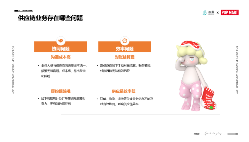 今年年初的時候,海鼎的汪路路總來了一次泡泡瑪特,當時我把痛點跟他聊了一下,他就說海鼎有一款產品叫SRM,通過這個契機,我們就把這個項目啟動起來了。