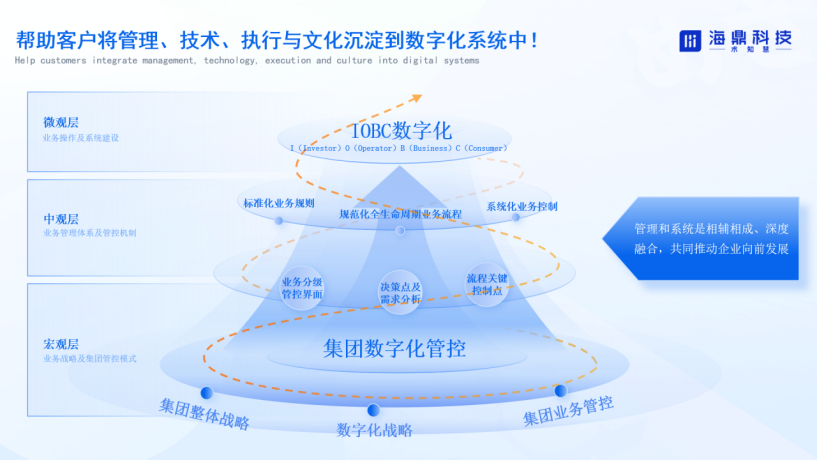 在創新轉型的過程中,企業的數字化建設也往往存在重復建設、信息壁壘等問題,針對這些問題,海鼎科技提供商業地產數字化全鏈路服務,將戰略、設計和技術融匯貫通,以數字化形式賦能商業體業務,采取以人為中心、以成果為主導的方法來定義數字戰略,通過豐富的行業經驗和專業團隊進行業務數據診斷和全業務流程數據化,將管理、技術、執行與文化沉淀到數字化系統中,推動企業的快速發展。